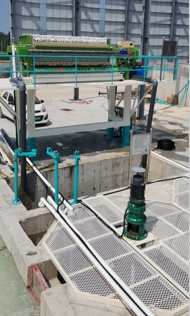 使用污水零排放系统。其中,压滤机是针对搅拌站专门研发的浆水回收设备,利用滤布两边的压力差使物料中的水分透过滤布,分离出来的粉料浆经由压滤机压缩成块,分离出的浆水经由浆水回收系统沉淀为清水,达到污水循环再利用,真正实现100%污水零排放。