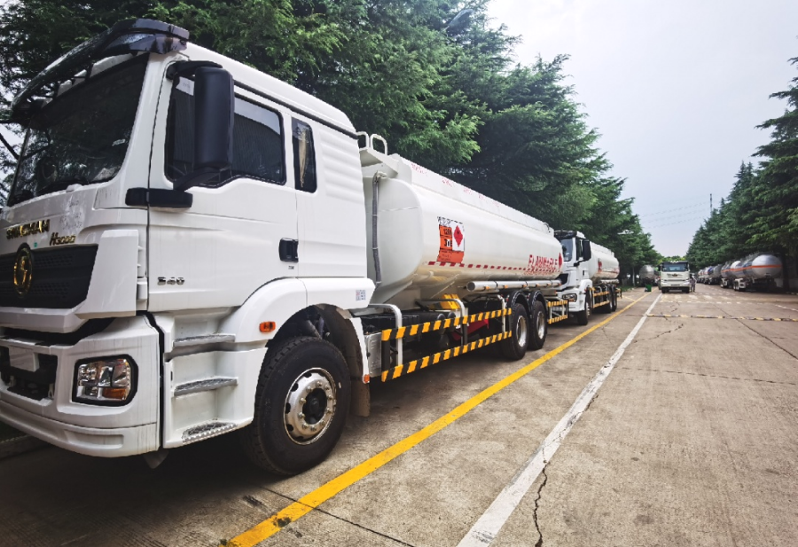 8月20日下午,十余台崭新的中集凌宇碳钢液罐运输车蓄势待发,即将奔向遥远的东南亚地区。