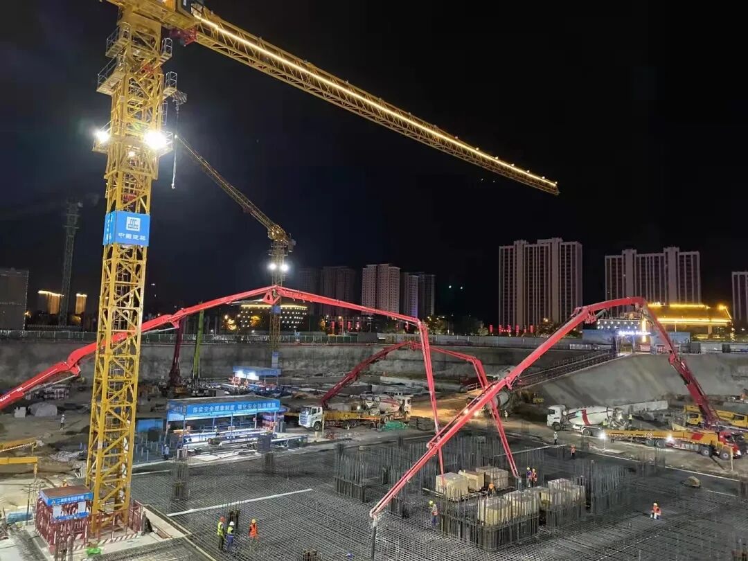 此次施工创造了天水市单次筏板ued网站浇筑量最大及浇筑厚度最大等多项记录,标志着中深财富中心超高层主体施工已全面展开。