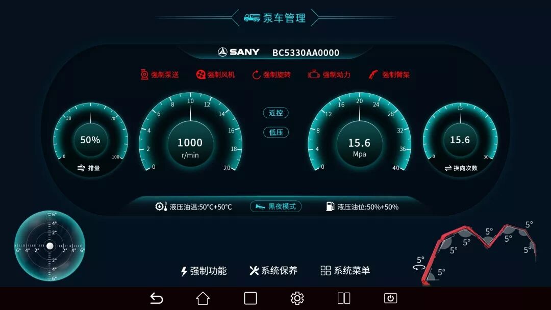 除了柔和模式省油之外,S系列泵车在爬坡时也更有劲,而且油耗并没有增加。