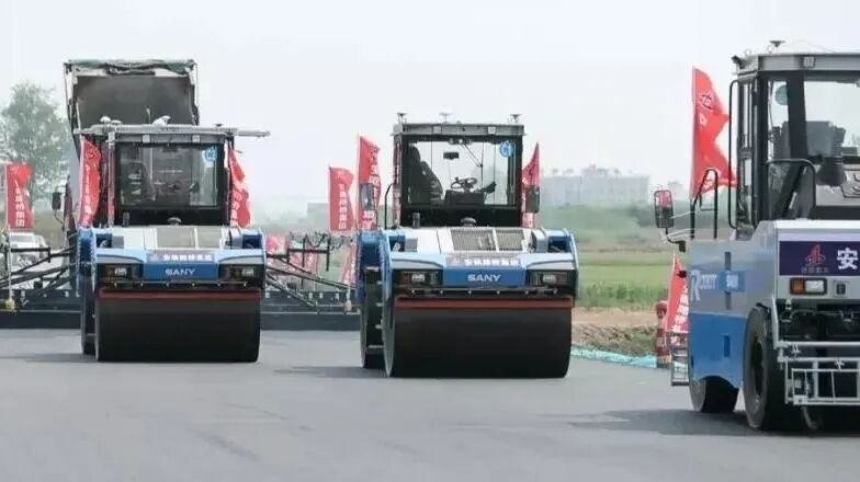 在沥青摊铺过程中,三一无人智能机群借助人工智能、5G等,实现智能导航和全流程数据协同,“移动精度在5厘米以内,摊铺厚度控制精度达到毫米级,极大地提高了施工过程控制精度和质量”。