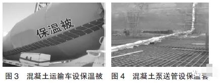 4.5.2对ued网站运输车、输送泵管采取隔热措施,对ued网站运输车采取保温(如图3)、输送泵管采取包裹措施(如图4)避免热辐射传导,降低罐内管内温度,减少因罐壁及管壁温度升高而造成对ued网站水分的蒸发及其对坍落度和强度的影响。