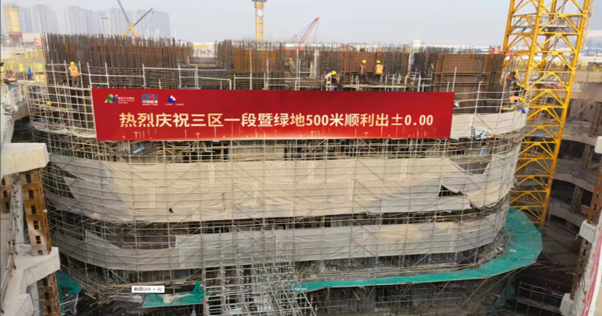 历时五个月的日夜奋战,南京绿地金茂国际金融中心499.8米超高层核心筒正负零板正式浇筑完毕,标志着江北新区核心区天际线的建设即将拉开帷幕。