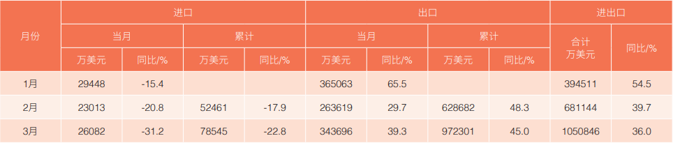 (1)在复杂多变的国际政治、经济、市场环境下,我国工程机械在去年出口总额340亿美元的基础上,今年一季度继续呈现较高增长速度,一季度各月出口均创当期历史最高水平,呈现出较强的韧性。