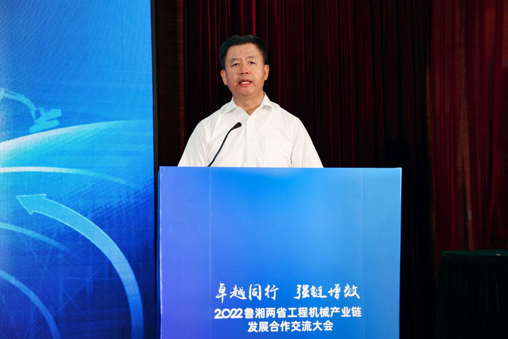 山东省工业和信息化厅副厅长靖士宽表示:“山东是装备制造业大省,产品种类丰富,农业机械、机械基础件、铸造、工程机械、内燃机、医疗设备、汽车行业居全国前列。从产业规模、竞争力、影响力等方面来看,湖南省、山东省都是工程机械强省,都承担着国家工程机械产业链供应链安全的重任,‘优势互补、协同创新、合作共赢’将会成为我们两省下一步合作的主旋律。这次共同举办2022鲁湘两省工程机械产业链发展合作交流大会,是推动湖南、山东两省工程机械产业发展,促进两省产业链企业合作,打通两省产业链协作创新,引领全国工程机械产业发展的重要实践。”