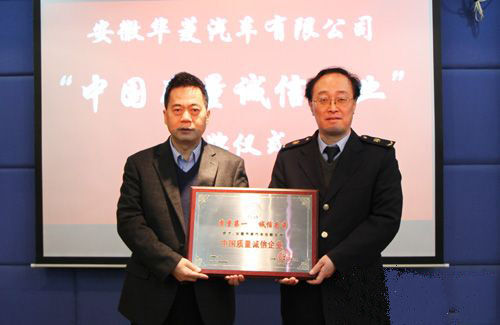 多年来,华菱汽车把世界最优秀企业作为奋斗的标杆,不断吸收欧美质量管理经验,在全国较早导入并实施卓越绩效管理模式,落实“首席质量官”制度,先后通过了CCC中国强制性认证、欧盟E-Mark认证等一系列认证,公司质量保证能力和产品一致性控制水平、企业综合竞争实力不断提高。自2005年出口以来,华菱重卡连续多年出口检验合格率达100%,拥有“安徽省名牌产品”6个,荣获了3届安徽省质量奖和安徽省首个“市长质量奖”、“安徽省卓越绩效奖”,2012年成为安徽省第一批首席质量官企业,马鞍山市首家“国家出口免验企业”,去年11月更是成为全省目前仅有的获安徽省政府质量奖的8家企业之一。此次获得“中国质量诚信企业”,是华菱公司实施“以质取胜、质量强企”发展战略的又一成果。