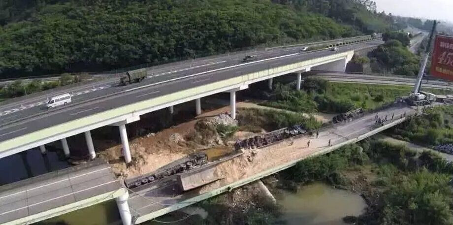 有关专家初步分析:或由货车超载所致,据悉本路段过往车辆多是十吨以上,再加超载可能导致桥梁承载过度;桥梁本身质量或存在相关质量问题。关于事故的进步一调查还在继续。