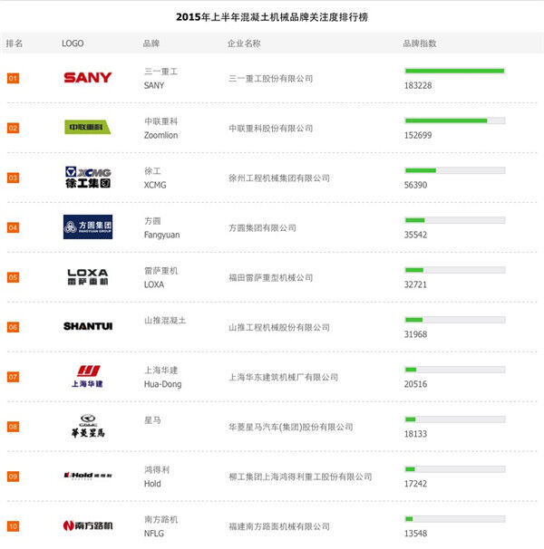 排行榜说明:本排行榜中的品牌点击人气可能受上榜时间的长短、上榜产品的数量及该品牌在中国地区的市场影响力左右,排名的唯一意义是反映中国工程机械用户对该品牌的关注度的体现。排名结果不代表行业权威,不能代表品牌本身的产品、价格质量、服务等方面的价值因素。