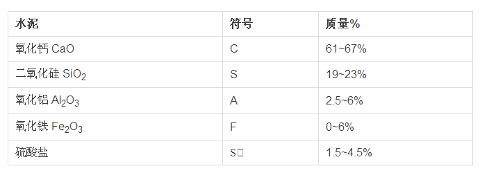 这里是硅酸盐水泥熟料(水泥的干粉版本)的一般配方。配比随应用变化,取决于水泥所需的材料性能。