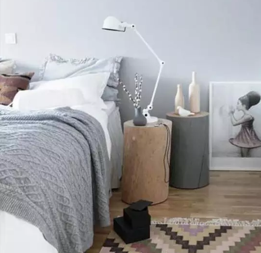 床头柜选择了两个木墩,在家里颇有原木的气息,舍弃了床头板的设计,没有一丝繁缛的感觉,翻来覆去更加自在。