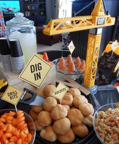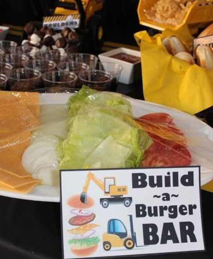 这里是主食区,鉴于工程机械行业人人心灵手巧,请用此挖掘机DIY汉堡享用!各位,吃饱了也别忘了把这些土块清清干净那!