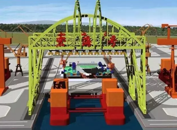 1最大的龙门吊:宏海号“宏海”号22000吨起重机,主要用于海上石油钻井平台整体的从陆地运到海上,将以往“化整为零”的建造方式变为“整存整取”。借助22000吨起重能力的“大家伙”,把拼装好的海洋油气钻井平台从陆地上的专用拼装胎位上提起来,直接放到海上去。设备总体高度150米,提升高度最高为65米,相当于把重量为500节高铁车厢或20层楼高的超重、超大型物件提升起来并行走。主体采用桁架式结构、拱形外观、多吊点双吊梁承载,跨度124.3米,宏海号总重14800吨,相当于两个埃菲尔铁塔的重量。“开下门,快递到了啊,你的钻井平台~”