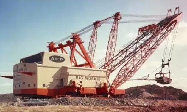 BIG MUSKIE官方编号为BE-4250W,是迄今最大的步进式拉铲,1967年B-E开始为美国的一个露天煤矿建造它,直至1969年5月建成并投入使用,当时的制造费用为2500万美元,专门用于土石剥离。它有22层楼高,用13800V高压电驱动,仅空铲斗的重量就有209吨;1991年Big Muskie因矿区采空而停止运行,1999年爆破拆解,仅铲斗留存下来。有卡车对比图哦~
