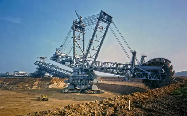 这是由德国克虏伯Krupp出品的世界上最大挖掘机,96米高(相当于30层楼),240米长,49米宽,14210吨重,其装备20个8.6立方米铲斗,总装机容量2万千瓦,轮斗驱动采用3台1680千瓦电机,总功率5040千瓦(6600马力)。只需一天,这个大家伙就能挖出24万立方米土。曾有一次一辆80吨的推土机不幸被挖起并塞到了轮斗轴承里,可见它的力量之大。其移动速度最大为600m/h,制造费用达到1亿美元。挖掘机技术哪家强?德国克虏伯敢称王~