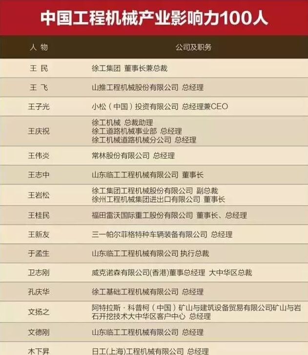 当然,数字“100”的设定,最终圈选出的人物,只是影响中国工程机械产业庞大人群中的“缩影”。100人榜单之外,还有着更多的人,或是因为去职,或是由于已经离开主机或配套领域,但他们曾经或者未来对产业发挥的作用和付诸的贡献,亦有理由被记住。
