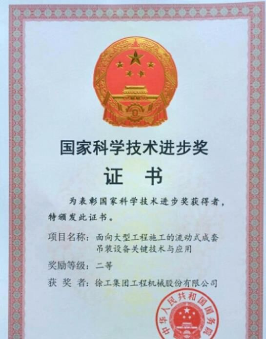 近日,在北京人民大会堂,中共中央、国务院隆重举行2015年度国家科学技术奖励大会,党和国家领导人习近平、李克强、刘云山、张高丽出席大会并向获得国家自然科学奖、国家技术发明奖、国家科学技术进步奖和国际科学技术合作奖的代表颁奖。徐工集团“面向大型工程施工的流动式成套吊装设备关键技术与应用”项目被授予年度国家科技进步二等奖,是工程机械行业年度唯一获奖项目。