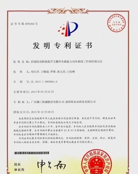 近日,柳工“控制发动机按提升克服外负载能力功率曲线工作的控制方法”的发明专利获得国家专利局授权。这是柳工进入发动机领域的第一项技术发明专利,同时也是与世界级企业康明斯合作的标志性技术成果。