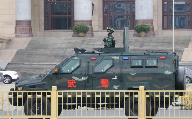 第十二届全国人民代表大会第三次会议和政协第十二届全国委员会第三次会议,将分别于2016年3月3和3月5在北京开幕,3月15日结束。图为2月29日,北京,武警乘车持枪在天安门广场及周边巡逻。