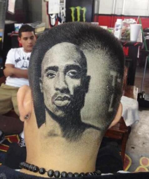 一名男性顾客的头上创意发型。