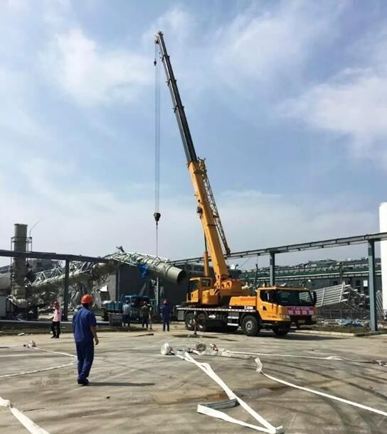23日下午,由6名人员、4台起重机、1台挖掘机和两辆服务车组成的救援小分队赶到盐城阜宁县灾区,紧急与当地救援武警、政府取得联系,听从统一指挥,全力投入现场抢险。