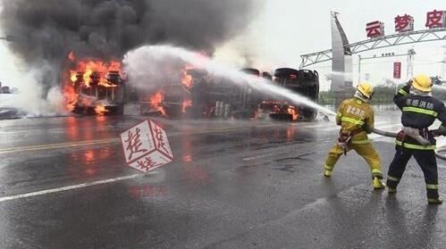 近日,在云梦新316国道与汉十连接线交汇处发生一起惨烈交通事故,一辆装有30吨甲醇槽罐车与一辆搅拌车相撞,事故导致两车侧翻并起火,一人死亡。