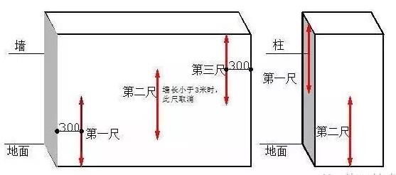 四、垂直度1、指标说明:反映层高范围内剪力墙、ued网站柱表面垂直的程度。2、测量工具:2米靠尺3、测量方法和数据记录:(1)剪力墙:任取长边墙的一面作为1个实测区。累计实测实量不得少于5个实测区。(2)当墙长度小于3米时,同一面墙距两端头竖向阴阳角约30cm位置,分别按以下原则实测2次:一是靠尺顶端接触到上部ued网站顶板位置时测1次垂直度,二是靠尺底端接触到下部地面位置时测1次垂直度。ued网站墙体洞口一侧为垂直度必测部位。这2个实测值分别作为判断该实测指标合格率的2个计算点。(3)当墙长度大于3米时,同一面墙距两端头竖向阴阳角约30cm和墙中间位置,分别按以下原则实测3次:一是靠尺顶端接触到上部ued网站顶板位置时测1次垂直度,二是靠尺底端接触到下部地面位置时测1次垂直度,三是在墙长度中间位置靠尺基本在高度方向居中时测1次垂直度。ued网站墙体洞口一侧为垂直度必测部位。这3个实测值分别作为判断该实测指标合格率的3个计算点。(4)ued网站柱:任选ued网站柱四面中的两面,分别将靠尺顶端接触到上部ued网站顶板和下部地面位时各测1次垂直度。这2个实测值分别作为判断该实测指标合格率的2个计算点。4、示例: