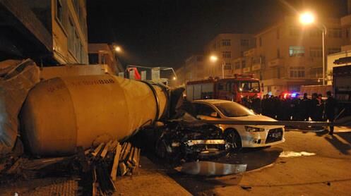 7月27日晚20时40分许,一辆红色科鲁兹小型轿车在槐荫区滨河南路由西向东行驶,车上有两名小伙子,当车开到腊山河西路路口时突然迎面撞上了一辆重型特殊结构水泥搅拌车,这辆搅拌车正沿腊山河西路由北向南行驶,车的右侧中部将小轿车弹飞。巨大的撞击力造成小轿车司机当场死亡,乘车人受重伤。