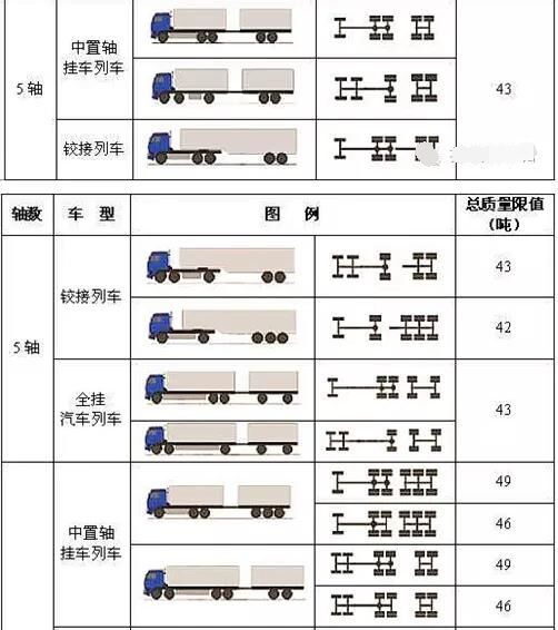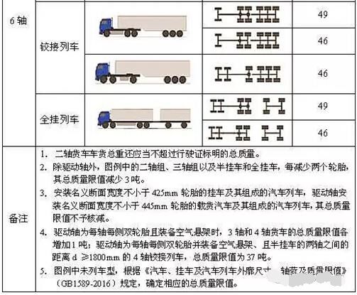 按照《道路车辆外廓尺寸、轴荷及质量限值》确定的最大质量限值作为认定标准。其中,最大的变化是6轴车由55吨变为49吨。