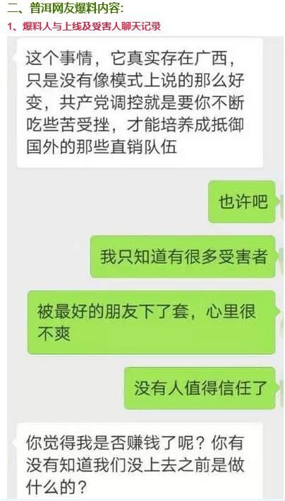 网友爆料称:"1040阳光工程"打着“国家项目工程“、”资本运行“的旗号在普洱大量蔓延,已有很多人上当受骗,自己也为受害者之一,自家共被骗10多万元,今天想曝光该事件,少些人上当受骗。