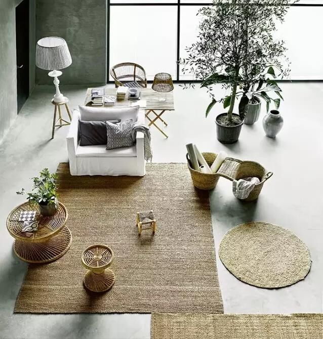 编制地毯与一盆绿色的植物,让这个客厅空间多了几分自然的气息,雅致也不失生机。