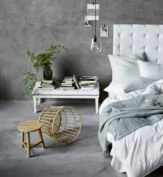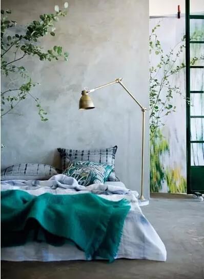 被水泥包裹的卧室,本来是很生硬冰冷的,绿植与床品的巧妙搭配,让这个空间焕发出大自然的气息。