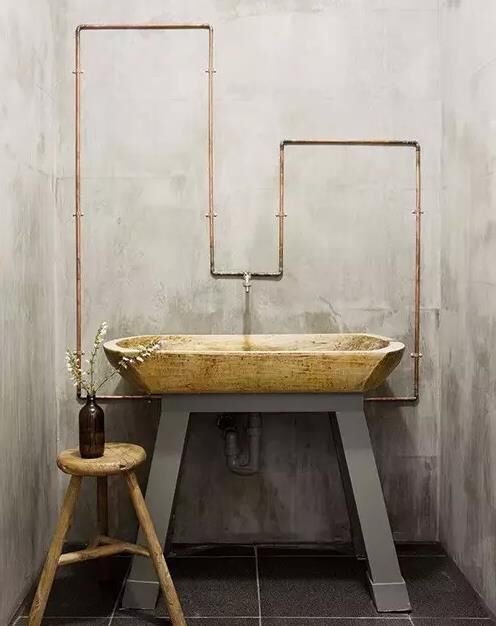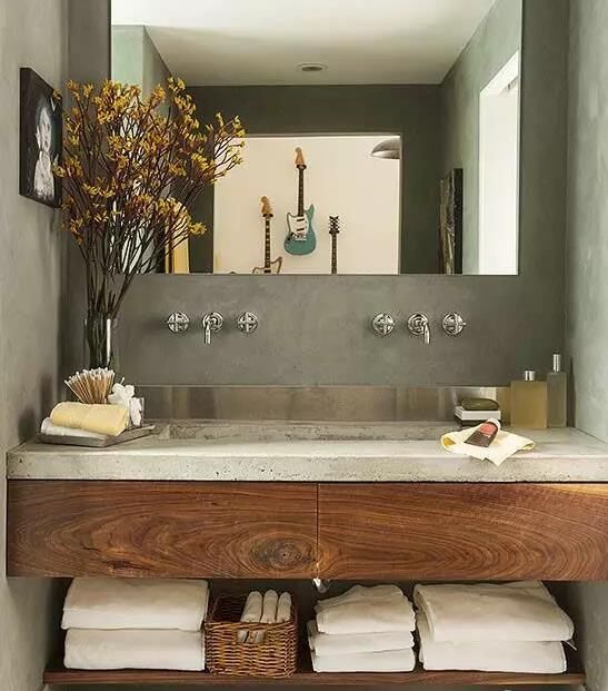一眼就爱上这个洗漱空间,水泥与木质竟然搭配地如此完美。