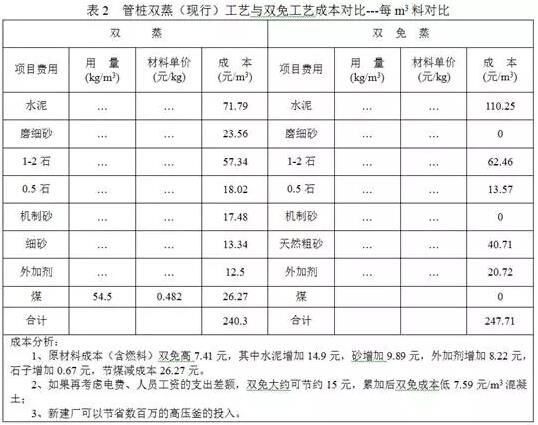 从表中数据可以知道:广东地区只有每年的4~11月的8个月适合采用“双免”工艺,每年的12月~次年的3月四个月可以采用“单免”工艺。生产场地(堆场)要3天以上生产量的堆放周转,钢模配备也比传统工艺多些。