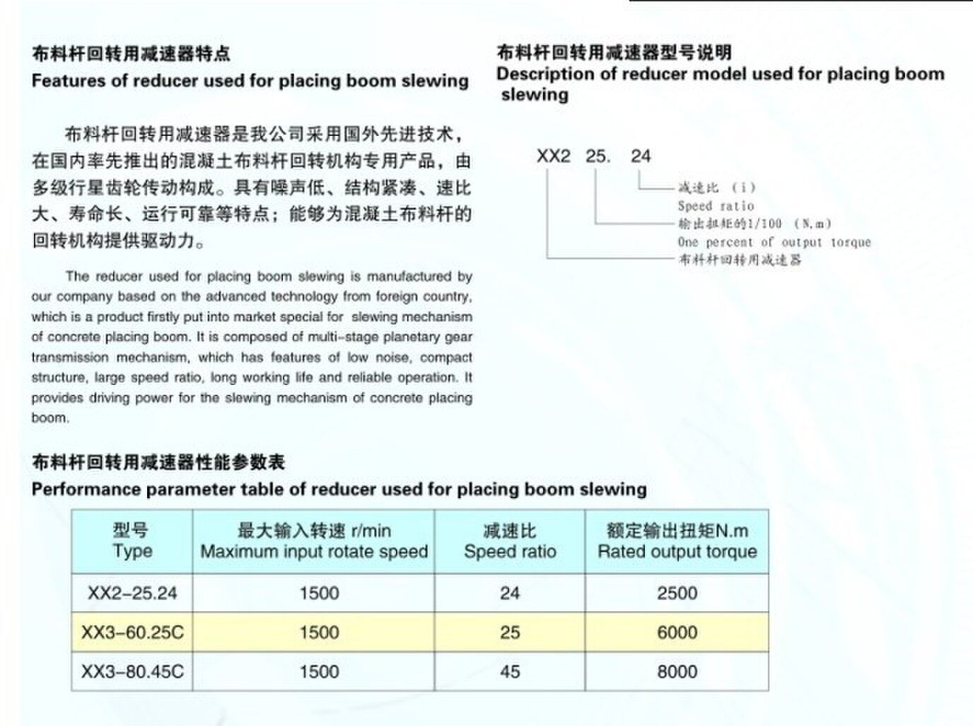 归属行业:XX系列布料杆回转用减速器