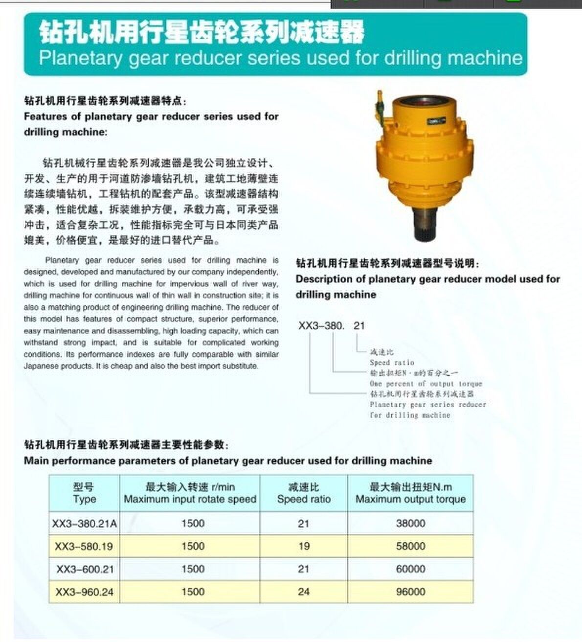 归属行业:XX系列钻孔机用行星齿轮减速器