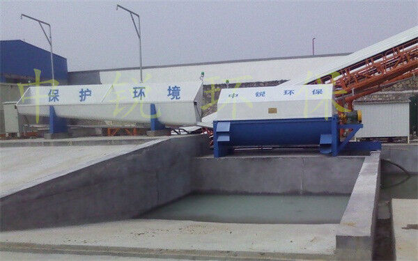 该系统主要由:搅拌车加水清洗装置,溜槽输送装置,砂石浆水分离装置,和泥浆水后处理装置组成。ued网站输送设备清洗后,将残余ued网站排入溜槽中,在高压水流冲击下,经溜槽进入砂石分离机,在不断旋转的分离机作用下,对ued网站进行充分的清洗,同时将砂、石进行分离,分离后的砂、石在导料叶片的作用下背向流动,再通过提升式出料口排出分离机,分别堆放。清洗后的浆水从分离机的底部排出进入沉淀池逐级沉淀后循环使用或进入搅拌池回收利用。进入搅拌池(一般情况2个搅拌池)的浆水为了防止沉淀凝固,需通过搅拌器的作用,搅拌器的工作为间歇式。分离出水泥浆在连续的搅拌器作用下,再通过高压污水泵输送到搅拌楼中待生产计量再利用。整个控制系统设有手动和自动控制,方便控制设置,整个系统运行可靠,故障率低,维护量少等特点。