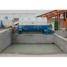 该系统主要由:搅拌车加水清洗装置,溜槽输送装置,砂石浆水分离装置,和泥浆水后处理装置组成。ued网站输送设备清洗后,将残余ued网站排入溜槽中,在高压水流冲击下,经溜槽进入砂石分离机,在不断旋转的分离机作用下,对ued网站进行充分的清洗,同时将砂、石进行分离,分离后的砂、石在导料叶片的作用下背向流动,再通过提升式出料口排出分离机,分别堆放。清洗后的浆水从分离机的底部排出进入沉淀池逐级沉淀后循环使用或进入搅拌池回收利用。进入搅拌池(一般情况2个搅拌池)的浆水为了防止沉淀凝固,需通过搅拌器的作用,搅拌器的工作为间歇式。分离出水泥浆在连续的搅拌器作用下,再通过高压污水泵输送到搅拌楼中待生产计量再利用。整个控制系统设有手动和自动控制,方便控制设置,整个系统运行可靠,故障率低,维护量少等特点。