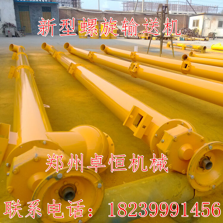 螺旋输送机一般由输送机本体、进出料口及驱动装置三大部分组成;螺旋输送机的螺旋叶片有实体螺旋面、带式螺旋面和叶片螺旋面三种形式,其中,叶片式螺旋面应用相对较少,主要用于输送粘度较大和可压缩性物料,这种螺悬面型,在完成输送作业过程中,同时具有并完成对物料的搅拌、混合等功能。螺旋输送机与其它输送设备相比,具有整机截面尺寸小、密封性能好、运行平稳可靠、可中间多点装料和卸料及操作安全、维修简便等优点。