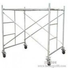 移动式脚手架应用于室、内外装修;门面广告;桥梁支撑;模板支撑;满堂脚手架,墙壁脚手架等用途。具有装卸方便,安全可靠,价惠实用等优点优点: 1)多功能:能根据具体施工要求,组成不同组架尺寸、形状和承载能力的单、双排脚手架,支撑架,支撑柱,物料提升架,爬升脚手架,悬挑架等多种功能的施工装备。也可用于搭设施工棚、料棚、灯塔等构筑物。特别适合于搭设曲面脚手架和重载支撑架。 2)高功效:常用杆件中最长为3130mm,重17.07kg。整架拼拆速度比常规快3~5倍,拼拆快速省力,工人用一把铁锤即可完成全部作业,避免了螺栓操作带来的诸多不便。 3)通用性强:主构件均采用普通的扣件式钢管脚手架之钢管,可用扣件同普通钢管连接,通用性强。 4)承载力大:立杆连接是同轴心承插,横杆同立杆靠碗扣接头连接,接头具有可靠的抗弯、抗剪、抗扭力学性能。而且各杆件轴心线交于一点,节点在框架平面内,因此,结构稳固可靠,承载力大。(整架承载力提高,约比同等清况的扣件式钢管脚手架提高15%以上,) 5)安全可靠:接头设计时,考虑到上碗扣螺旋摩擦力和自重力作用,使接头具有可靠的自锁能力。作用于横杆上的荷载通过下碗扣传递给立杆,下碗扣具有很强的抗剪能力(最大为199kN)。上碗扣即使没被压紧,横杆接头也不致脱出而造成事故。同时配备有安全网支架,间横杆,脚手板,挡脚板,架梯。挑粱.连墙撑等杆配件,使用安全可靠。 6)易于加工:主构件用Φ48×3.5、Q 235焊接钢管,制造工艺简单,成本适中,可直接对现有扣件式脚手架进行加工改造.不需要复杂的加工设备。 7)不易丢失:该脚手架无零散易丢失扣件,把构件丢失减少到最小程度。 8)维修少:该脚手架构件消除了螺栓连接.构件经碰耐磕.一般锈蚀不影响拼拆作业,不需特殊养护、维修。 9)便于管理:构件系列标准化,构件外表涂以橘黄色。美观大方,构件堆放整齐,便于现场材料管理,满足文明施工要求。 10)易于运输:该脚手架最长构件3130mtm,最重构件40.53kg,便于搬运和运输。