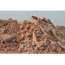 在作为建筑垃圾处理设备时,反击式破碎机进入工作指令后,电源接通、电动机开始加速旋转,并通过三角皮带带动转子旋转。10分钟后,建筑垃圾通过运输带、进料口进入第一破碎腔,被高速旋转的转子板锤相撞击,按照碰撞理论设计的转子能使小于300mPa的大建筑垃圾破碎为小块,加之它们碰撞后又反击到反击板的衬板上,以及建筑垃圾间的相互碰撞,大部分建筑垃圾应在此腔内粉身碎骨。偶尔一些难以破碎的大块建筑垃圾经第一腔的各种打击后,也出现各种纹理及裂纹,它们在转子的推动下推开第一闸门,进入第二破碎腔,进入第二腔的大小块建筑垃圾在转子的离心力作用下,撞击到第二反击板上,此时,建筑垃圾的速度较第一腔又增加了ω 倍,使小建筑垃圾能进一步破碎成更小的建筑垃圾。当破碎后的建筑垃圾骨料小于第三反击板的栅孔宽度时,建筑垃圾骨料即可通过这些栅孔漏出,大于栅孔的建筑垃圾骨料在第三破碎腔进一步破碎成建筑垃圾成料而通过第三闸门排出。