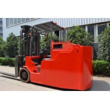使用自主研发的大吨位转向桥机构,并已获得专利权,使得转弯半径更小,承载力大,转向更轻松。与同吨位内燃平衡重相比,与同吨位内燃平衡重相比,具有轴距小、转弯半径小、低重心、具有极佳的转向稳定性、机动性;采用大容量蓄电池,使得续航能力更强;独有的双泵合流液压系统,能量消耗小,维护成本低,自动无级调速油泵驱动控制系统,更节能、噪音小、延长电机寿命;采用高性能聚胺脂材料特制车轮,承载力大,变形量小;采用进口集成电控系统,技术成熟可靠;采用多盘湿式制动器,无磨损和全封闭,即使在灰尘和潮湿的环境中也能保证较长的寿命,免维护;采用储能液压制动系统,制动力矩大、制动更可靠、更安全、更轻松;采用交流驱动电机,噪音小,免维护,充分利用交流电机的特性,再生制动,再生能源回收;采用电磁制动器作为驻车制动,加速器释放控制,制动自动生效,保证叉车在坡道工况下的安全;货叉采用液压操作微动调距,更安全、更轻松、更准确。