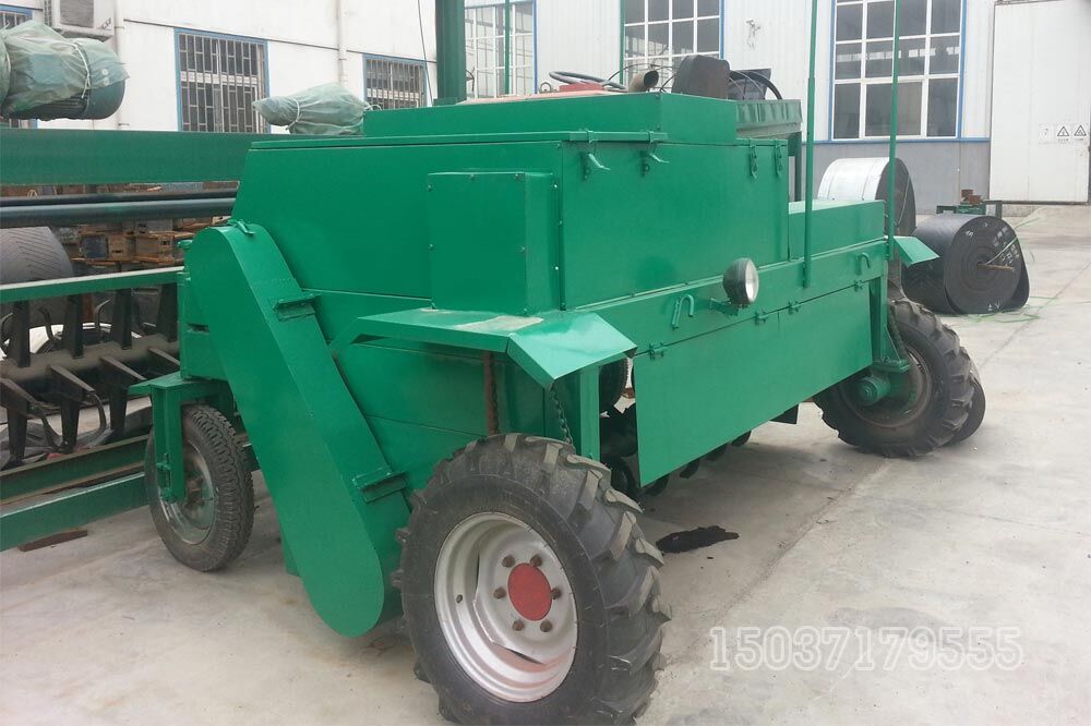 生物有机肥发酵翻堆车是生产生物有机肥专用成套设备中的主机,该机采取四轮行走设计,可前进、倒退、转弯,由一人操控驾驶。行驶中整车骑跨在予先堆置的长条形肥基上,由机架下挂装的旋转刀轴对肥基原料实施翻拌、蓬松、移堆,车过之后篡成新的条形垛堆。即可在开阔场地,也可在车间大棚中实施作业。该机一大技术突破在于整合了物料发酵后期的破碎功能。随着物料逐渐脱水,加装破碎装置的刀轴可有效地破碎肥料在发酵过程中形成的板块,不仅省去了一台粉碎机,更主要的大大提高了粉碎的效率,降低了成本,从根本上解决了生产量受粉碎机制约的问题。