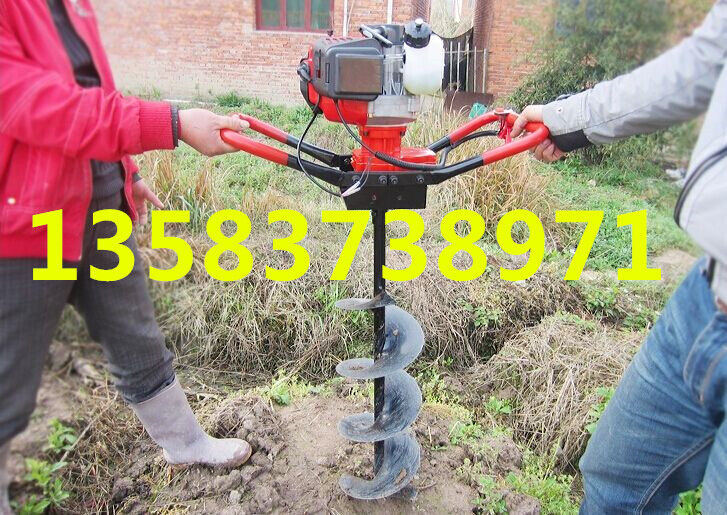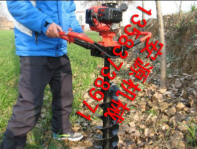 地钻由小型通用汽油机,齿轮箱及特殊设计的钻具组成.适合在土地,冻土,冰层上打孔.广泛用于园林,种植,植树,物探,道路建设等领域. 2.钻头采用锰钢合成更加的坚硬。对硬土质,超硬土质,粘土,冻土等都能工作。 3.地钻可根据树种,选配多种规格的钻头,以满足用户需要。 4.地钻能够让人们从繁重的体力劳动解放出来,广泛应用于植树造林,栽种果林、篱笆、及秋季给果树施肥等。适合各种地形,效率高,便于携带及野外田地作业。 5.地钻既可以单人操作,又可双人操作,经济实用。 注意事项:1.使用正品2T(二冲程)FC级机油,严禁使用4T(四冲程)机油。 2.严禁使用纯汽油。 3.严格按25比1的比例兑油. 4.新机器不可高速使用,请低速磨合3小时。 5.严禁在高速的时候突然关停发动机,否则会使下次开机启动困难。 6.感觉机器震动异常,请立即停机检查,是否破损,松动,偏心。 7.严禁在有乱石堆的草地上使用。 8.钻头有严格的尺寸限制,严禁私自改装或使用增大号钻头. 9.每工作一段时间清除火花塞、消音器积碳,清洗空气滤清器,向齿轮箱加注黄油。 10.遇到问题自己无法解决的,不要私自拆装。 11.机器长时间不用时,应该将剩余的燃油倒出,然后发动机器将化油器内的燃油全部燃烧干净。 12.想让机器运转更稳定,寿命更长请经常保养。 安全事项: A.人身安全:严禁在室内添加汽油,严防火灾;机器运行时,严禁手脚靠近钻头;清理或检查机器时必须停机。 B.机器安全:地钻起动前必须清理草坪上的杂物,确保机器安全运转。