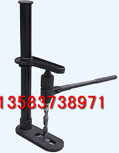 使用方法: 先把钻裤安装到手办钻带六愣空的那头,然后安装上钻头,把铁架子立起,带钩的那面用钢轨压住,用手扳钻带尖的一头顶住架子上面的铁螺丝(注:上面大螺丝可以调整),固定好后,带钻头的一面对准钢轨,上下摇动手办钻把手, 即可钻孔。