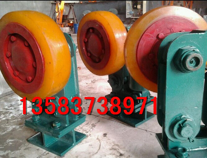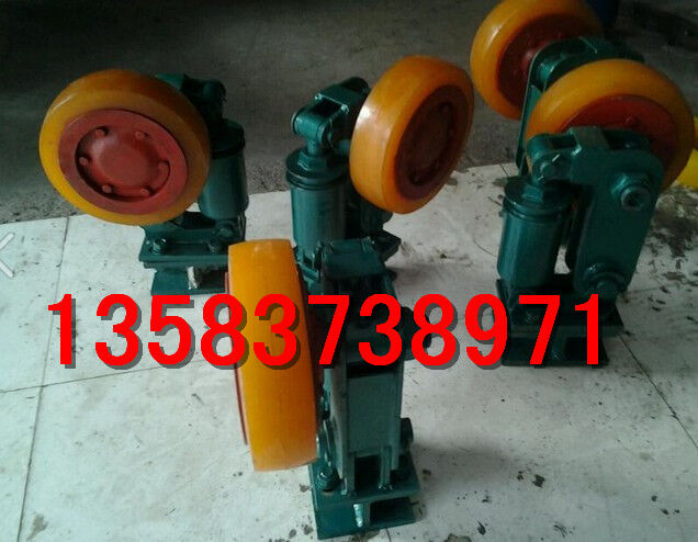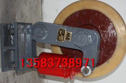 滚轮罐耳装置 滚轮罐耳 罐耳滚轮导向装置 L250滚轮罐耳 L300滚轮罐耳滚轮罐耳(又名滚轮导向装置)是提升容器(罐笼或箕斗)的组成部分,它起导向和缓冲作用。是确保提升容器沿导轨平稳运行的关键所在。一,主要机构及特点:滚轮罐耳主要由轮轴、支架、缓冲装置、底座等组成。二,主要特点:轮轴采用橡胶密封语机械密封相结合的组合密封方式,胶圈采用高耐磨材料,安全可靠,寿命长。1.支架摆动销轴装有高分子耐磨轴套,使用中不产生松动现象。2.缓冲装置采用符合弹性体缓冲结构,性能稳定,免维护。3.可用缓冲装置来方便的调整滚轮与罐道间的位置。4.表面防范采用镀锌刷漆新工艺,防腐防锈性能好。三、其他说明滚轮罐耳由中间布置一个,左右侧各一个组成一组滚轮罐耳可根据用户要求进行设计