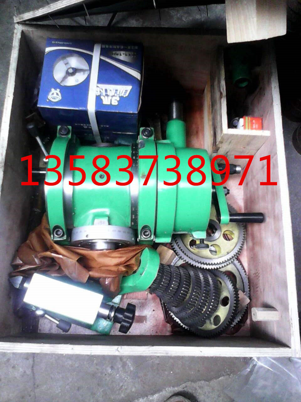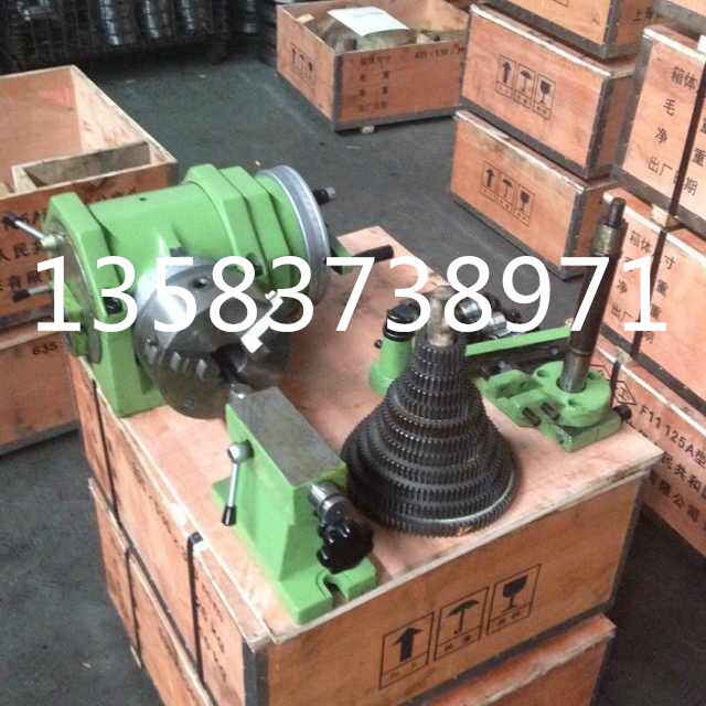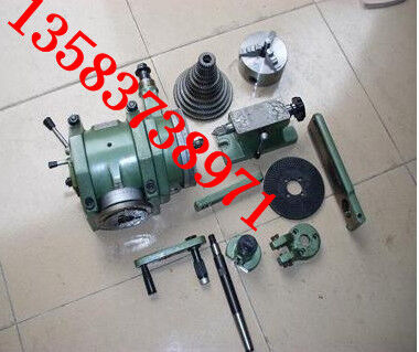 万能分度头是安装在铣床上用于将工件分成任意等份的的机床附件。利用分度刻度环和游标,定位销和分度盘以及交换齿轮,将装卡在顶尖间或卡盘上的工件分成任意角度,可将圆周分成任意等份,辅助机床利用各种不同形状的刀具进行各种沟槽﹑正齿轮﹑螺旋正齿轮﹑阿基米德螺线凸轮等的加工工作。