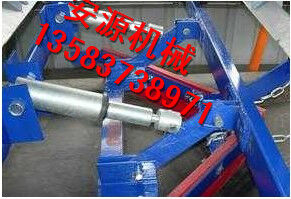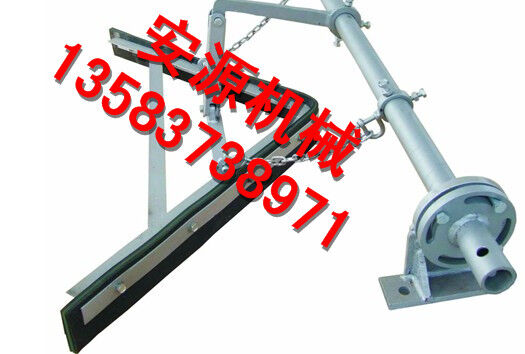 在正机安装时,首先确定好安装位置,将前吊杆焊在清扫器三角板上,再将横粱焊在机架上,前吊杆调正螺丝顶在横梁上,调正刮板与胶带距离,后吊环角铁焊在机架槽纲下面,吊着清扫器尾部,自动调正清扫器