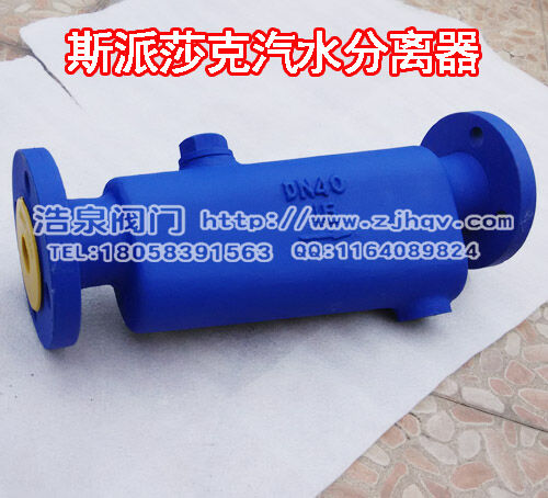 大量含水的蒸汽进入汽水分离器,并在其中以离心向下倾斜式运动。夹带的水份由于速度的降低而被分离出来。被分离出来的液体流入下部经疏水阀排出体外,干燥清洁的蒸汽从分离器出口排出。