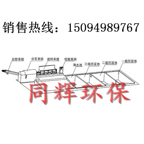 该装置机械结构简单,环保效益显著:分离出砂石表面光洁,砂子含灰≤1%,含水≤3-5%;洗车水循环使用,污水达到零的排放;设备耐磨,操作简单,便于清理检修。