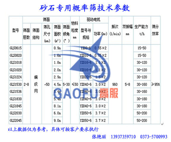 ★砂石振动筛-高服概率筛分机技术参数